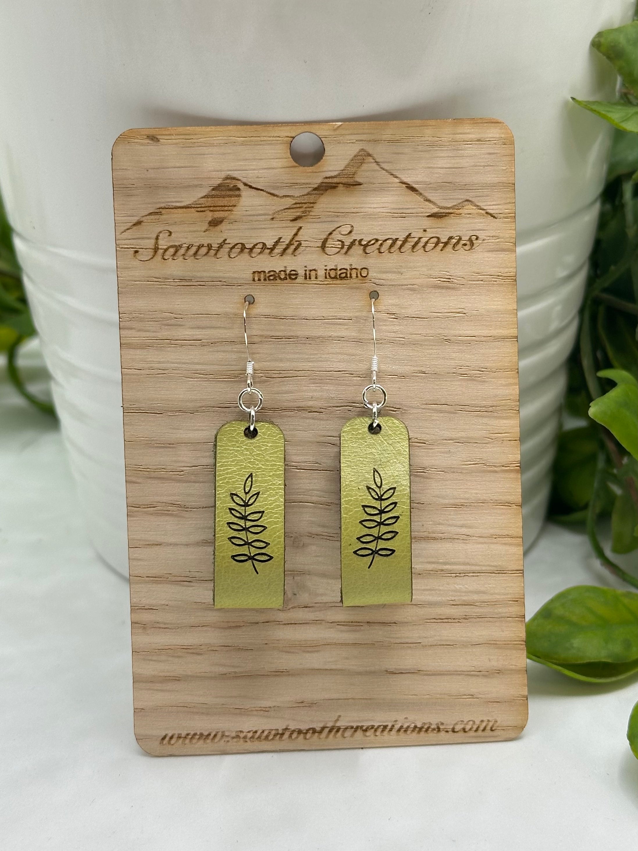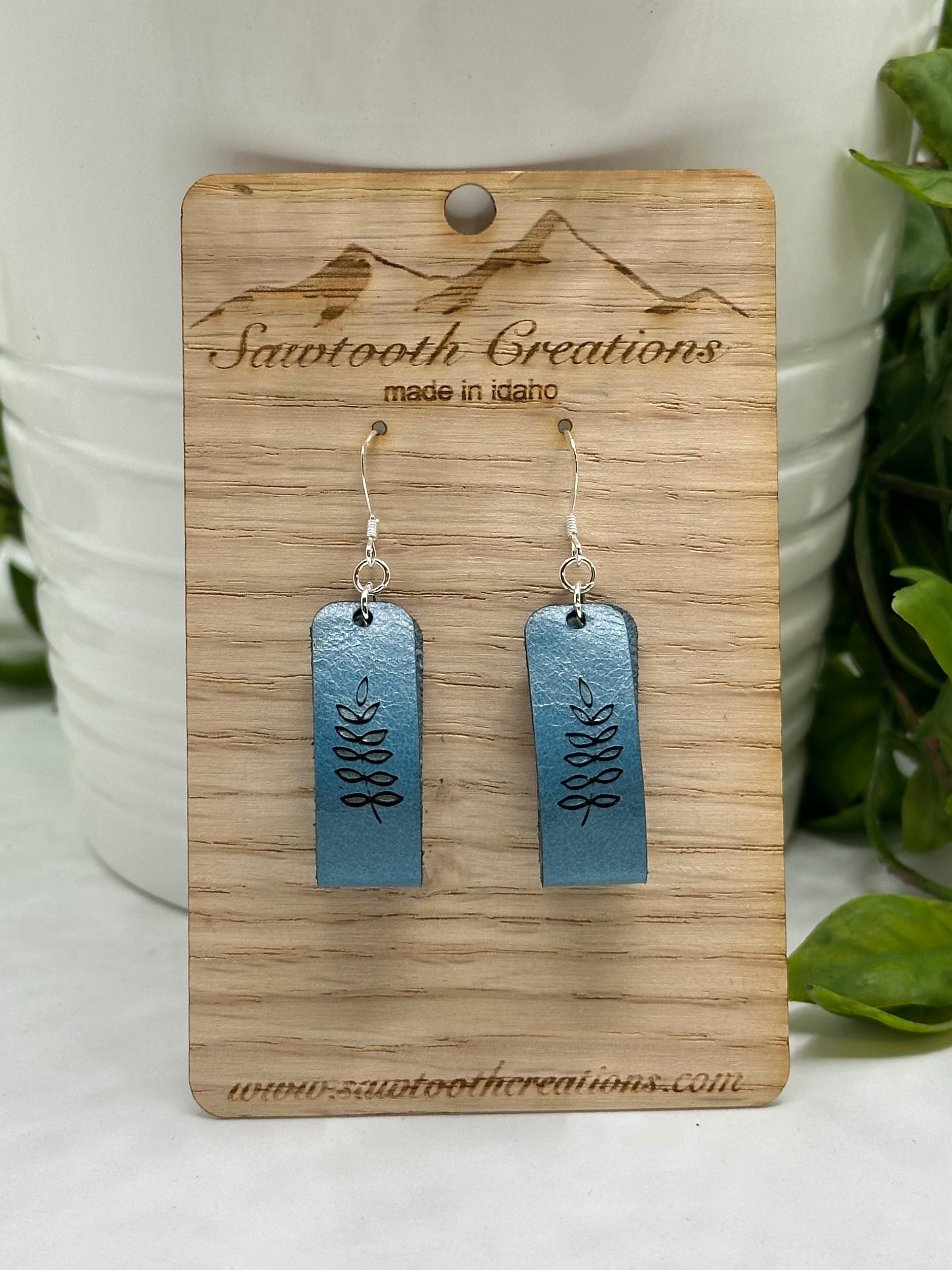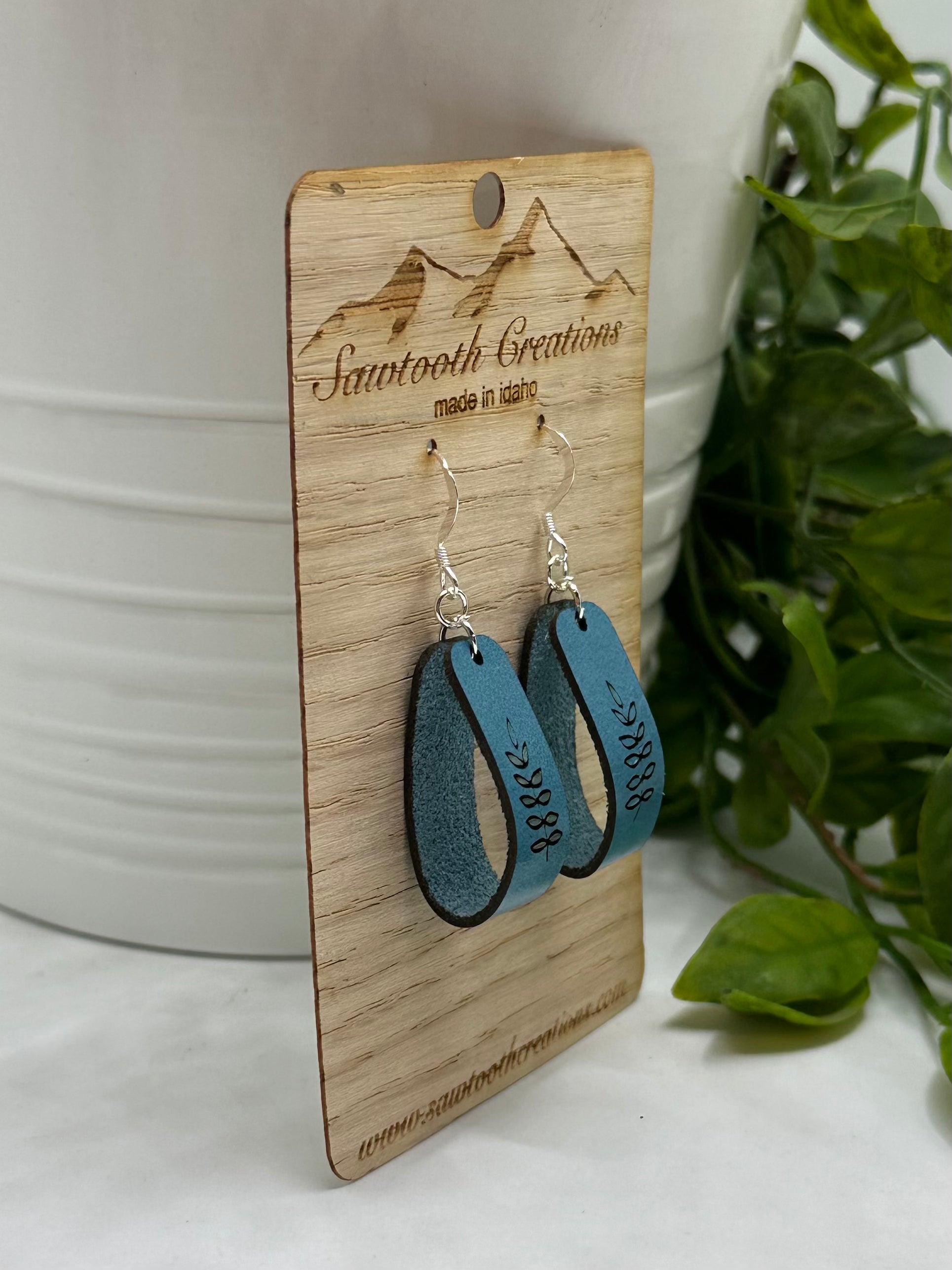 Beautifully engraved leather loops. They are very lightweight and dangle approximately 2 inches with earring hooks.